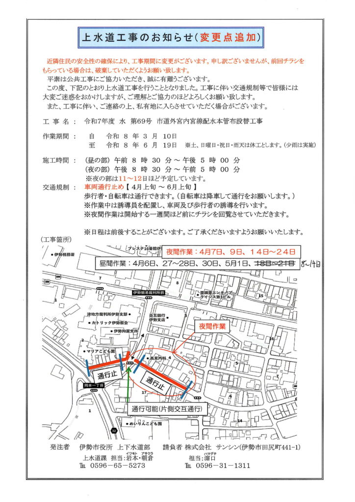 内科前の上水道工事の予定(訂正版)
